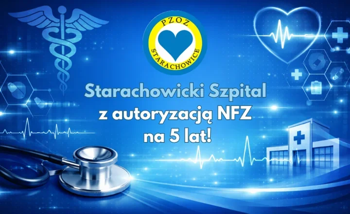 W starachowickim szpitalu zapadła decyzja, która porządkuje najważniejszą sprawę dla pacjentów i personelu – ciągłość publicznego finansowania. Powiatowy Zakład Opieki Zdrowotnej w Starachowicach dostał autoryzację Narodowego Funduszu Zdrowia, ważną przez pięć lat. Za tym dokumentem stoi kilka miesięcy sprawdzania organizacji pracy, jakości procedur i bezpieczeństwa leczenia.